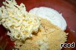 Вареные желтки натереть на терке. Добавить сметану, соду, масло, натертое на терке, муку, ванилин, сахар и всё тщательно вымесить до однородной консистенции.