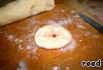 Из теста сформировать толстые лепешки. Положить в центр каждой лепешки начинку. Это может быть орешек, изюм или цукаты, как у меня. Слепить шарик и сосульку. Для пингвинов сделать конусы и лучше завернуть их в фольгу, чтобы они не потеряли форму.