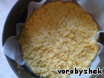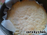 Выкладываем тесто в форму, покрытую пергаментом. Равномерно разровнять его по дну формы.