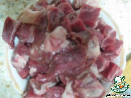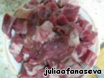 • Грудинку промойте, обсушите и нарежьте кубиками.
