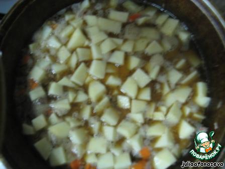 • Влейте 600 мл воды и варите 30 мин до готовности овощей и мяса.