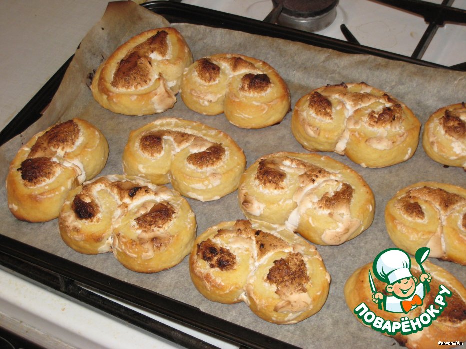 Выпекать в предварительно нагретой духовке при 180 градусах около 15 минут, как станут румяными, готово.