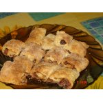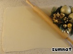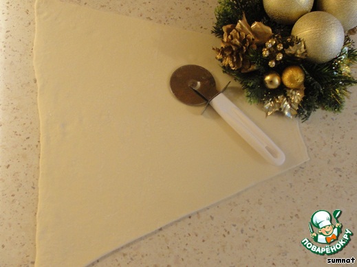 Раскатал размороженное тесто до толщины примерно в треть сантиметра,