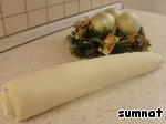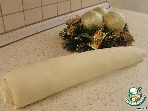 Осторожно завернул тесто в сужающийся от одного конца к другому рулет.