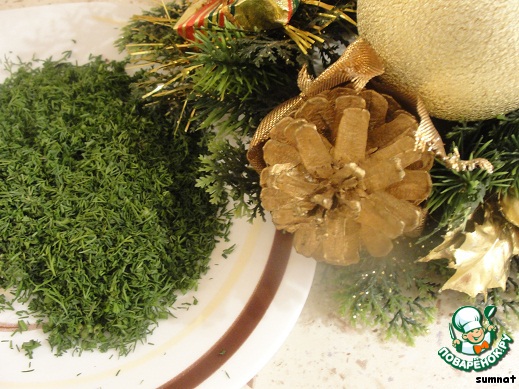 Пока рулетики выпекались, Дед Мороз мелко нарезал укроп,