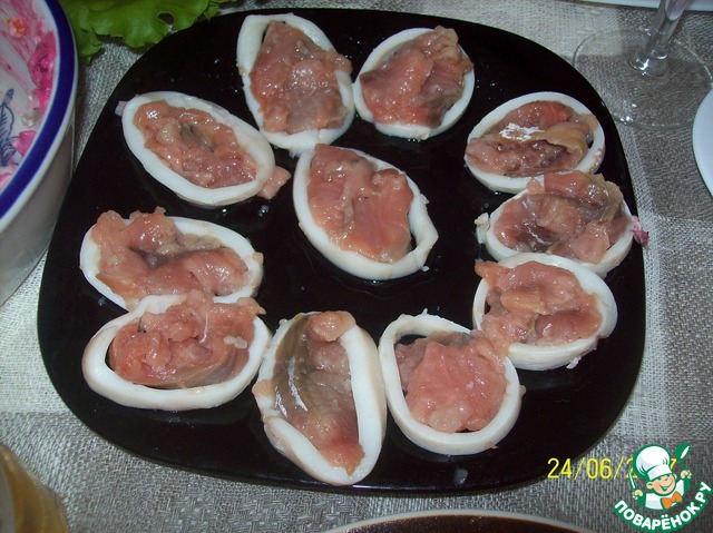 Рецепт «Горбуша малосольная с кальмарами»: