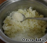 Добавить к готовому рису желатин и взбитые оставшиеся сливки.