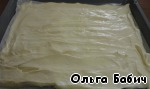 Выкладываем тесто по всей поверхности ровным слоем.