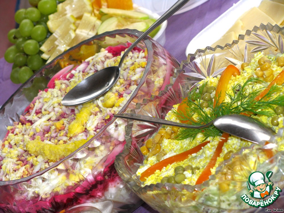 Вареные яйца очистить, потереть на мелкой терке и выложить последним слоем. Смазывать ничем не нужно. А вот украсить не помешает.
