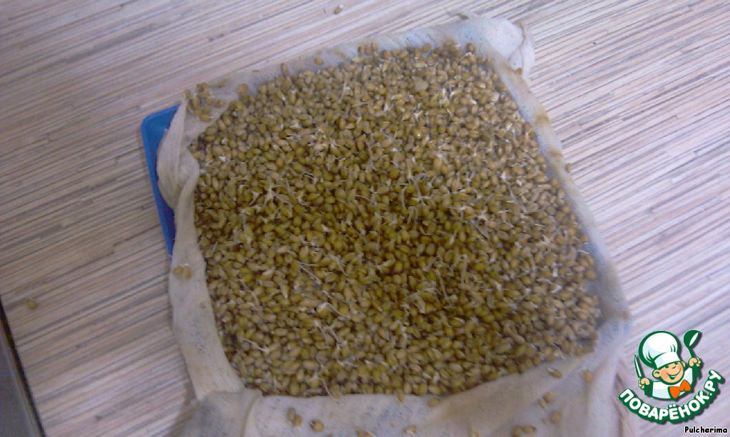 Если вам есть где купить пророщенную пшеницу - вы счатливчики))) Я проращивала сама: в чистую марлю положить ровным слоем промытую пшеницу, акрыть вторым слоем марли, смочить водичкой и оставить в месте без сквозняков на 1,5-2 суток, периодически проверяя влажность марли, если что - смачиваем еще.