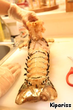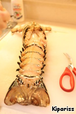 Срежьте плавники по всему лобстеру, хвост можете оставить - он украшает блюдо!