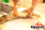 И, засунув пальцы под хвостовую часть, при этом удерживая голову, потяните мясо вверх.