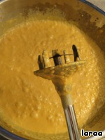 Все составляюшие пропустить в блендере. Можно затем процедить через сито, тогда будет еше нежнее, но это на любителя.