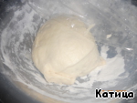 Сначала вымешиваем деревянной ложкой, а потом рукой.Должно получиться крутое тесто.Готовое тесто ставим в теплое место на час.
