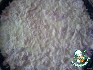 Залить смесью выложенные в сковороду ингридиенты. Поставить в духовку минут на 20.