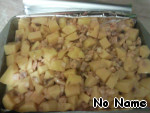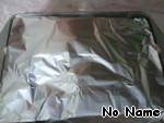 Большой противень застелить фольгой, высыпать картофель и накрыть сверху фольгой.