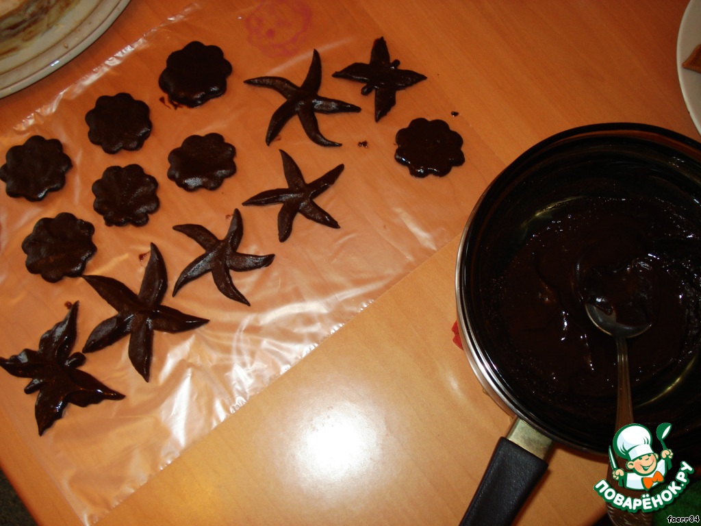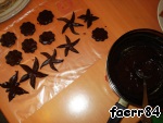 • Обмакиваем фигурки в глазури и оставляем на целлофане, пока не застынут.