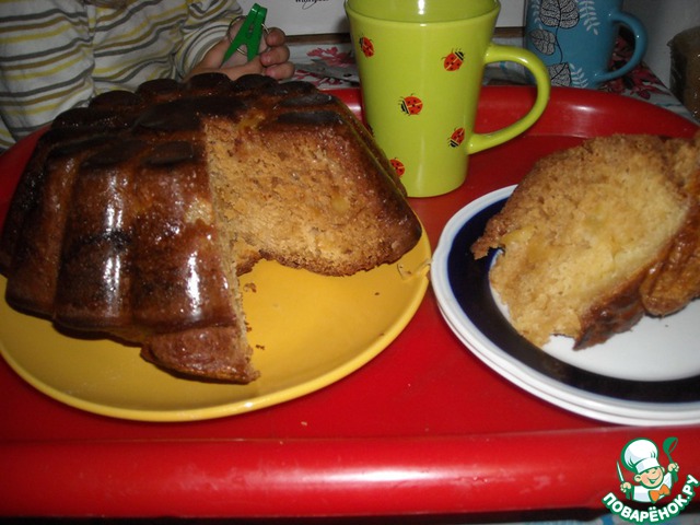 Оставался стакан кефира и немного консервированных ананасов с сиропом. Да еще клубничное варенье было открыто. Думала куда все это пристроить и напала на этот интересный рецепт! Все сложилось в замечательный кекс для вечернего чаепития.