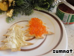 Черный водяной Дракон, хозяин 2012 года, требует присутствия на праздничном столе морепродуктов, красного цвета и оригинальности. Первый и второй пункт выполнить несложно, ведь большинство хозяек и так поставит на новогодний стол красную икру и/или красную малосольную рыбку. Но в какой форме? Предлагаю не огорчать Дракона банальными песочными тарталетками или батонными бутербродами, а повеселить его и гостей оригинальной подачей этих продуктов.