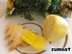 Возьмем очень мягкое сливочное масло и немного намажем на обе половинки елочки.