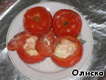 заворачиваем и укладываем рыбку внутрь помидоров.