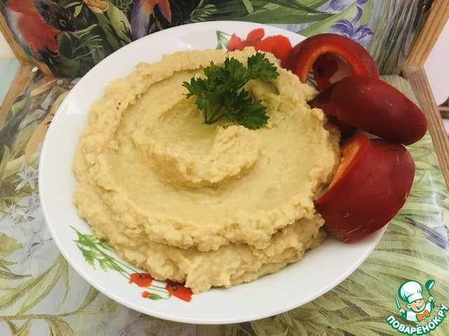 Очень вкусный хумус получается с укропом (но это по желанию). Подавать с еврейскими хрустящими лепешками (продаются в магазине).