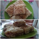 Тесто: Измельчаем на крупной терке масло (масло плотное, но не замороженное). Добавляем сахар, муку и соду (или разрыхлитель).