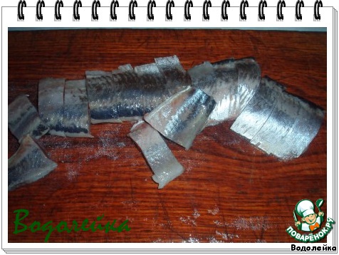 Если же селедка целая, тогда приготовить из нее филе (я тоже филе делала сама). По весу не могу сказать сколько завесят 4 шт. филешки. Но две селедки у меня завесили около 700гр. -