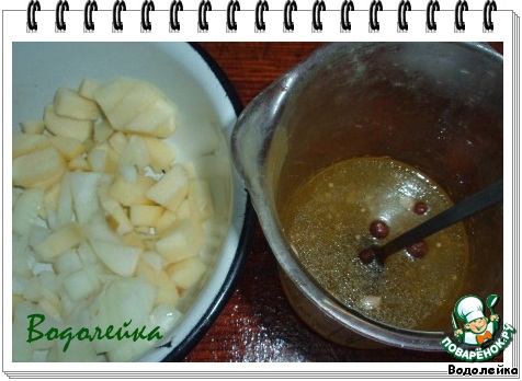 Соединяем вместе маринад с яблоком и луком. -