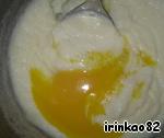 Снять манку с плиты, вбить в кашу желтки, добавить тертый сыр и хорошо перемешать
