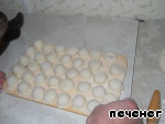 Раскатываем тесто блином, накладываем на пельменницу, кладём порционные кусочки фарша в ячейки. Сверху накрываем вторым блином.