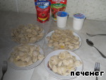 Небольшие НЛО-подобного вида мучные контейнера, содержащие небольшое количество тщательно измельченного свиного мяса.