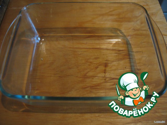 На дно жаропрочной посуды наливаем немного растительного масла. (Я использую посуду из жаропрочного стекла).