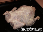 Фаршируем цыплёнка начинкой, формируем шею с помощью зубочисток и запекаем в духовке разогретой до 180 градусов около часа. Для того, чтобы образовалась вкусная равномерная корочка, периодически поливаем цыпленка жиром, который скапливается на противне.