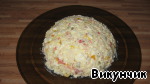 А теперь все заправляем майонезом, и ещё можно поперчить красным перцем.