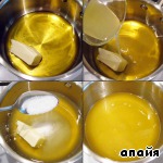 В сотейнике разогрела мед, масло, сахар, ванильный сахар. Постоянно помешивая, добавила лимонный сок. Сняла с огня, не доводя до кипения. -