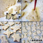 На присыпанном мукой столе раскатала тесто и при помощи форм для печенья вырезала фигурки. А при помощи палочки сделала маленькие отверстия в пряниках. Готовые пряники уложила на пекарскую бумагу на противень. Выпекала в заранее разогретой духовке при 180град. 15-20 минут.
