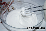 Делим яйца на желтки и белки. Белки начинаем взбивать на малых оборотах до помутнения. Затем увеличиваем скорость и взбиваем до пиков. Как только добились гладкой и блестящей массы, закрепляем результат сахаром. Добавляем его в несколько приемов.