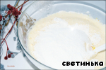 И, наконец, добавляем в несколько приемов муку. Думаю, как раз здесь и была моя ошибка. Я слишком много сделала телодвижений. Постарайтесь промешать массу несколькими движениями. Не надо мешать долго и тщательно, взбитые белки не любят лишних прикосновений.