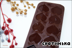 Далее пошло уже мое творчество. Дизайн тортика продумывала самостоятельно. Для фигурного шоколада топим на водяной бане шоколад, добавляем туда масло и размешиваем, добиваясь однородности ингров. Затем выкладываем шоколадную массу в силиконовую форму, стучим ею по столу, чтобы вышел лишний воздух, и отправляем в холодильник до полного застывания.