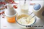 Апельсин измельчаем в блендере, маскарпоне и сливки взбиваем по отдельности. Набираем в кондитерский шприц взбитые сливки для украшения. Смешиваем все ингры в однородную массу и переходим к пропитке.