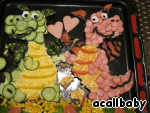 Животы драконов – это плавленый сыр (у зеленого дракона – с желтком, а полоски – болгарский перец; у розового – с паприкой, полоски - помидор).