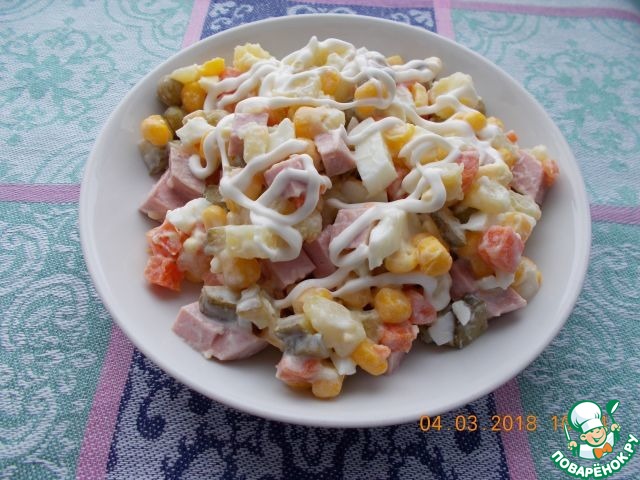 - Кукуруза (консервированная) — 0,5 бан.