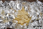 Бережно завернем и проколем в нескольких местах фольгу зубочисткой...