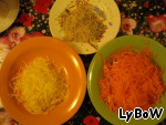 • Натереть на терке морковь, сыр, орехи (у меня были грецкие).