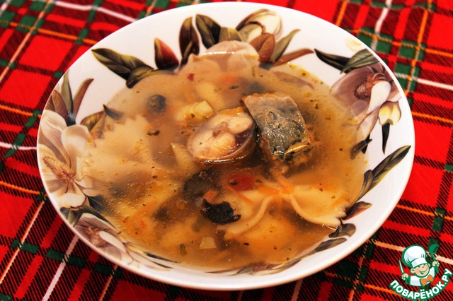 Рецепт «Рыбный суп с грибами и вермишелью»:
