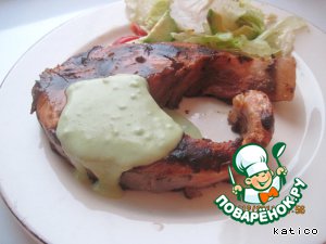 Я очень люблю японскую кухню, иногда пытаюсь воссоздать дома кое-что. Но часто бывает, что продукты куплю, что-то одно приготовлю, и потом долго "пылятся" мои японские ингредиенты на полке в холодильнике и мозолят мне глаза. Так и в этот раз. Вот и решила я приготовить рыбу и найти своим остаткам применение, но не уверена, что блюдо можно отнести к национальной кухне. Рыба получилась очень вкусная, нежная, выраженный мисо-аромат, соус умеренно остренький, со вкусом васаби.