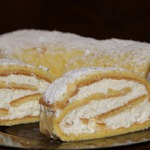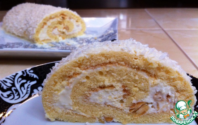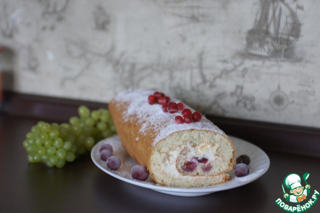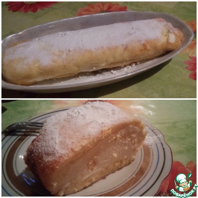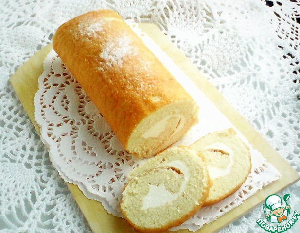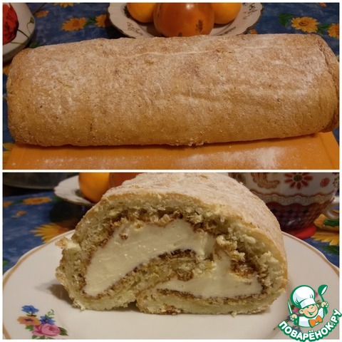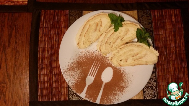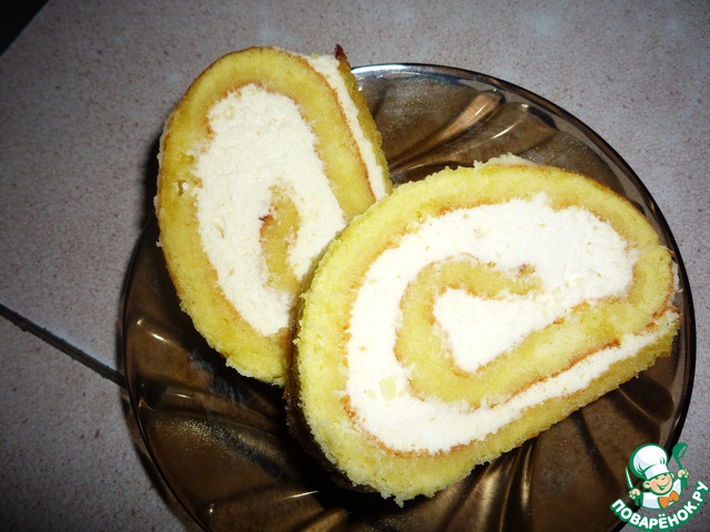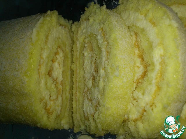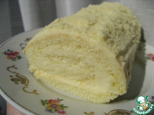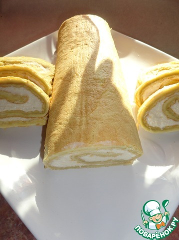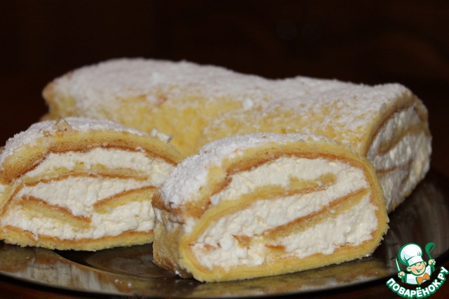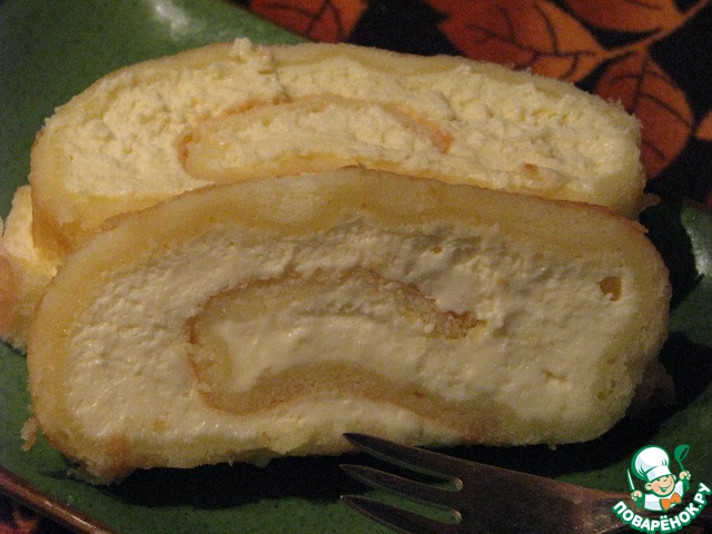 Я часто пеку, меня трудно удивить выпечкой. На этот рулет "Куршену" Оли warunik (ЖЖ) смотрела давно. Конкурс подстегнул - испекла. Это полный восторг! Просто не ожидала, что такой набор продуктов даст ТАКОЙ результат! Во-первых, совершенно нестандартный, на мой взгляд, подход к приготовлению бисквита - с горячей водой. Видимо, за счет этого тесто при взбивании увеличилось больше, чем в три раза и напоминало пену. Во-вторых, банальный творог, который так не хотят есть дети в чистом виде и который им так необходим, при помощи нескольких компонентов превратился во вкуснейший и нежнейший крем. В третьих, на все про все потратила меньше часа (вместе с походом в магазин за творогом). В общем, я результатом более чем довольна, и этот рулет теперь у меня в любимчиках. П. С. Автор предлагает добавить в творог сыр Маскарпоне, я же использовала густую сметану, поэтому решилась на переименование. А с маскарпоне сделаю обязательно, но в следующий раз - уверена, это будет просто волшебно!