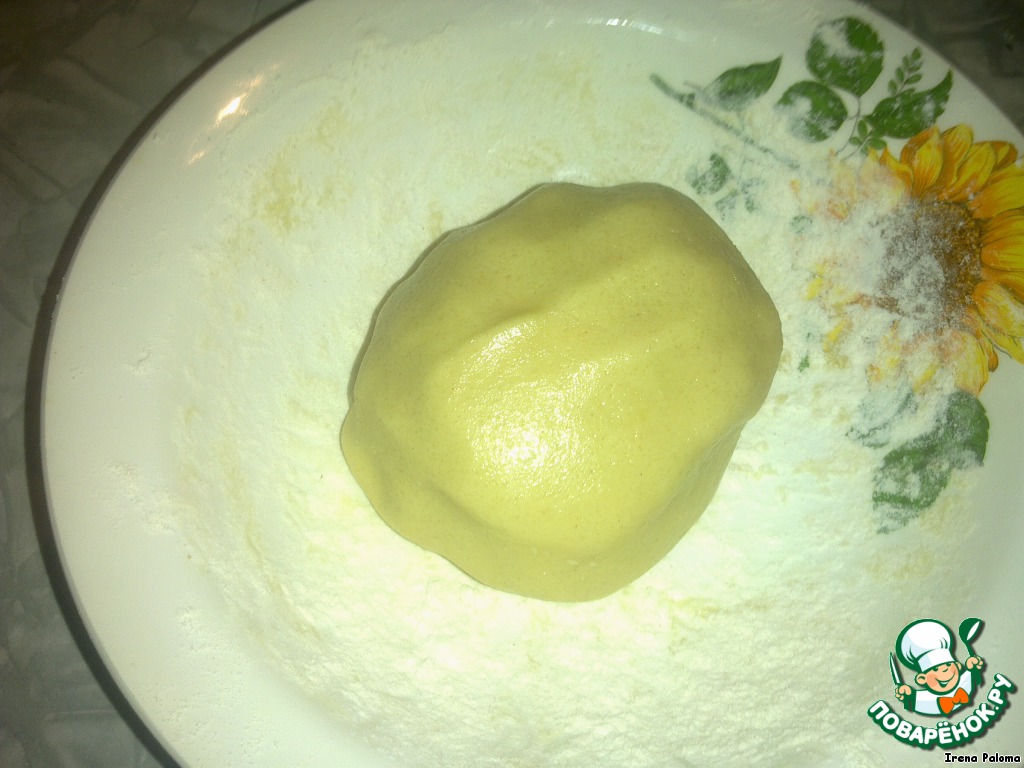 - Яйцо куриное (1 желток в тесто, 1 желток в начинку, 2 белка в начинку) — 2 шт