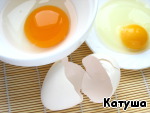 ярко жёлтый, огро-о-омный желток и совершенно прозрачный белок. Добавим пол скорлупки воды на яйцо и взобьем, соль по желанию. Теперь понеслось!